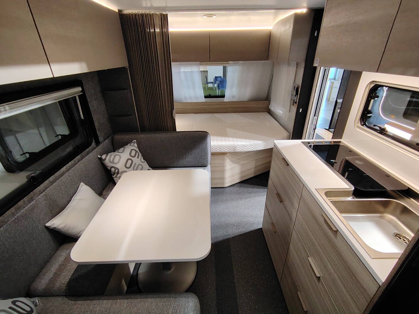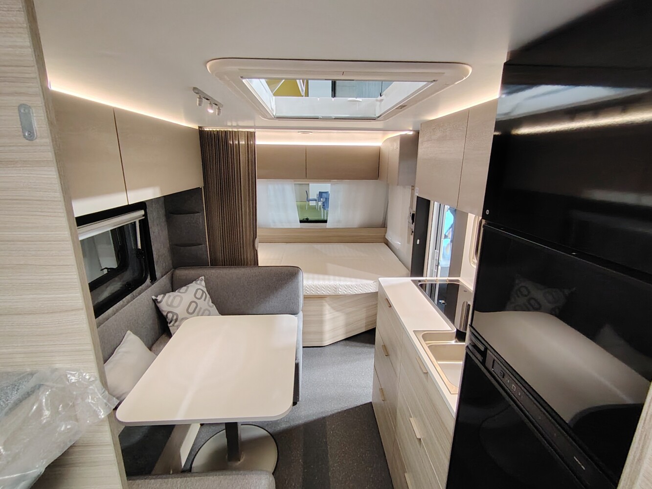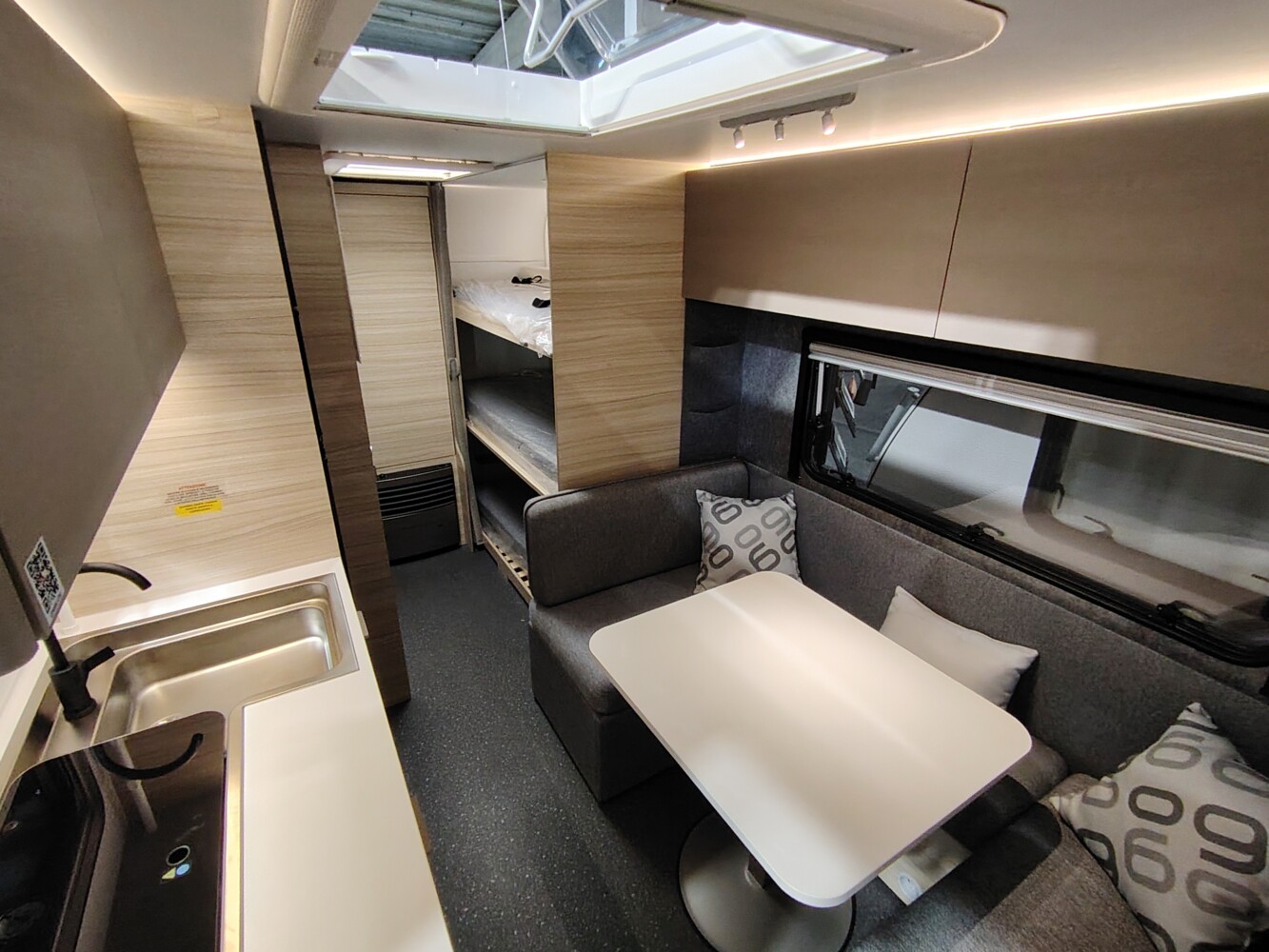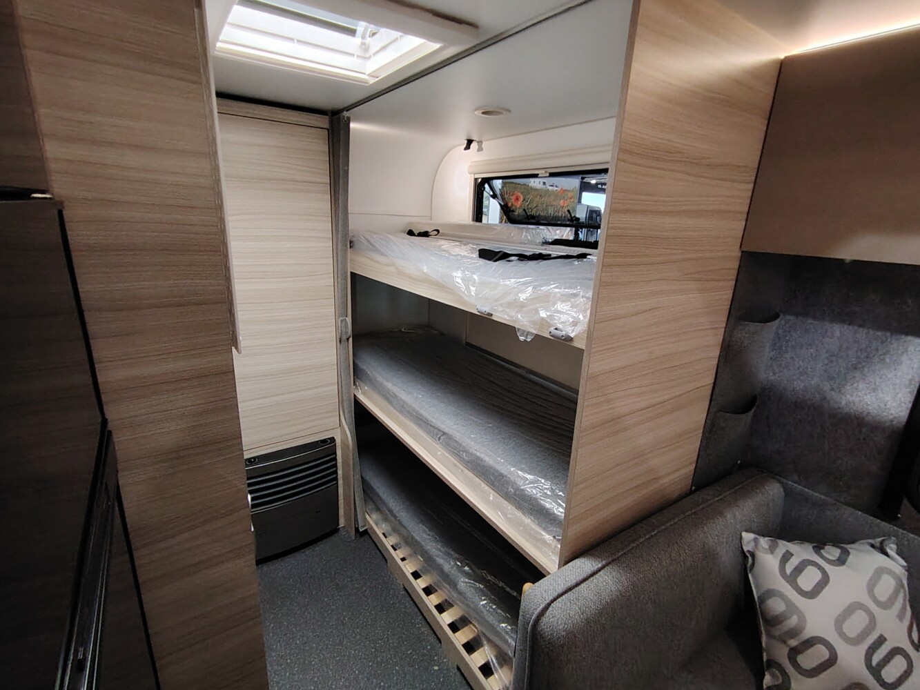 Adria Altea 552 PK, Caravan Nuova da Immatricolare, posti letto 7 con letto, 3 Letti a Castello, letto padronale Trasversale oltre ulteriori 2 letti ricavabili nella dinette, massa complessiva a pieno carico da 1300kg.
